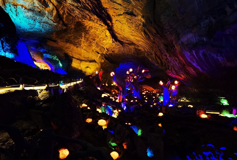 如何設(shè)計(jì)打造溶洞夜景燈光秀才能更吸引人?溶洞的景觀如詩(shī)如畫(huà),經(jīng)過(guò)自然之美來(lái)烘托溶洞本身特征。普通中藝光影秀在停止燈光秀設(shè)計(jì)時(shí),會(huì)經(jīng)過(guò)自然化藝術(shù)化、場(chǎng)景化、科技化相分離,打造一個(gè)藝術(shù)與科技兼并的溶洞光影秀,讓游客在這里感受自然、藝術(shù)、科技交融的美好。那么,終究應(yīng)該如何設(shè)計(jì)打造溶洞夜景燈光秀才干更吸收人呢?溶洞——3D投影在溶洞內(nèi)的洞壁上,用3D投影技術(shù)演繹溶洞的構(gòu)成原理,特征,以及地質(zhì)學(xué)問(wèn),歷史文化特征等等,讓游客在這里感受藝術(shù)與科技的交融。 END溪河、暗河——投影、水幕電影 溶洞的溪河、暗河則依托水紋燈,將山體、形態(tài)、顏色與河流的投影交互,相映成趣。在溪河、暗河河面比擬開(kāi)闊,平整的中央中藝光影秀會(huì)思索打造水幕電影,光影交匯,絢麗多彩。 瀑布——燈品設(shè)置加投影瀑布傾注而下,裝置水底燈、煙霧燈,呈現(xiàn)煙霧旋繞的仙境景觀,并運(yùn)用多媒體投影技術(shù)打造魚(yú)、蓮花等人魚(yú)可互動(dòng)的瀑布景觀。END絕壁——山體投影1中藝光影秀經(jīng)過(guò)對(duì)溶洞地質(zhì)文化的提煉和當(dāng)?shù)貧v史文化的解讀,創(chuàng)意設(shè)計(jì)出多媒體投影內(nèi)容,投影在絕壁上,讓游客體驗(yàn)圓滿的娛學(xué)閱歷。